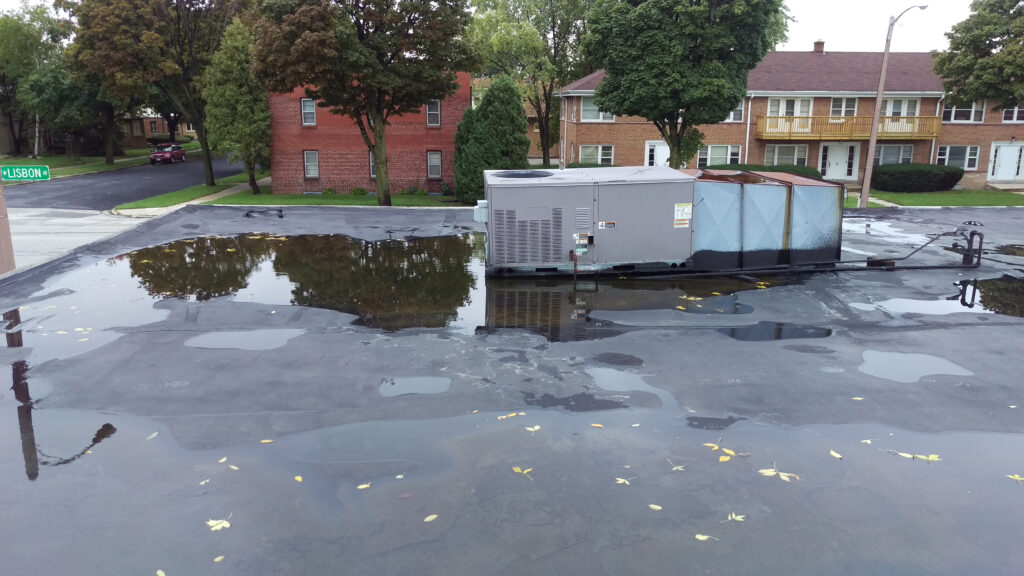 Mold thrives in environments with moisture, warmth, and organic material. Flat commercial roofs, especially those with poor drainage, provide optimal conditions for mold. Standing water can pool on the roof, creating a damp environment that encourages mold and mildew growth. Mold not only damages the roofing materials but can also seep into the building. This can cause health risks for employees or tenants because of poor indoor air quality.